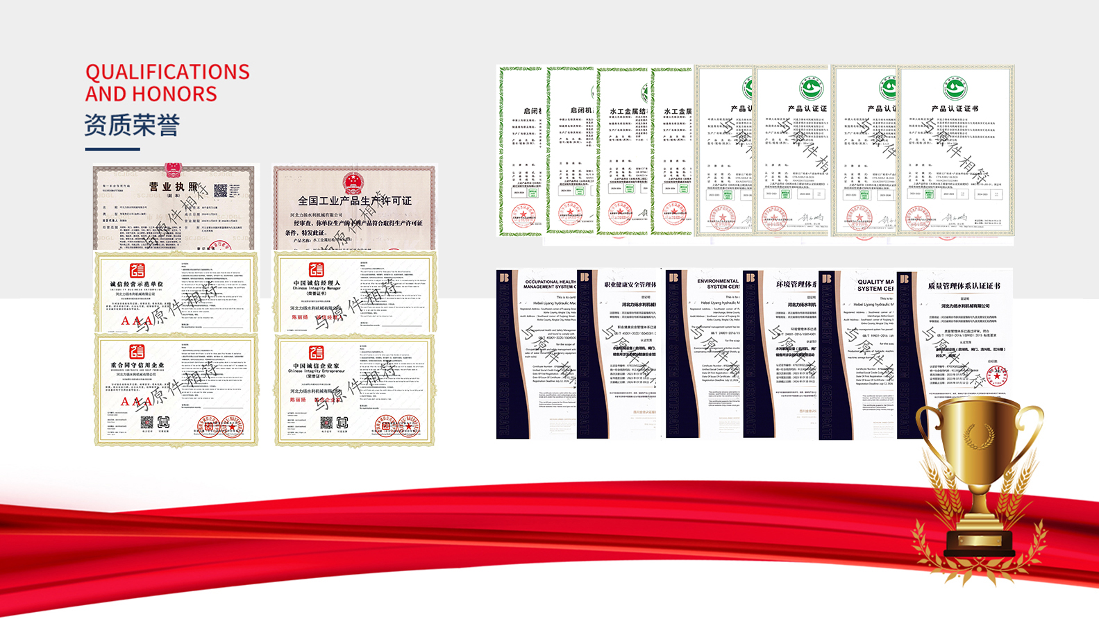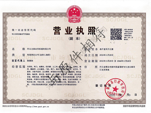 河北力揚(yáng)水利機(jī)械有限公司,成立于2016年,地址河北省邢臺(tái)市新河縣富強(qiáng)街與九龍北路交匯處西南角具備生產(chǎn)及供應(yīng)、安裝能力。我們公司位于董振堂將軍故里,河北省邢臺(tái)市新河縣九龍工業(yè)區(qū),是一家集設(shè)計(jì)、生產(chǎn)、銷售、安裝、售后一體的綜合性水利機(jī)械廠家,現(xiàn)有人員共40余名,獲有國家頒發(fā)的全國工業(yè)產(chǎn)品生產(chǎn)許可證、ISO質(zhì)量管理體系認(rèn)證、環(huán)境體系認(rèn)證、職業(yè)健康體系認(rèn)證并且我公司通過水利相關(guān)部門水工金屬結(jié)構(gòu)質(zhì)量檢驗(yàn)中心的考核和監(jiān)督下獲得了:認(rèn)證頒發(fā)的四項(xiàng)產(chǎn)品認(rèn)證證書(平面閘門、弧形閘門、回轉(zhuǎn)式清污機(jī)、耙斗式清污